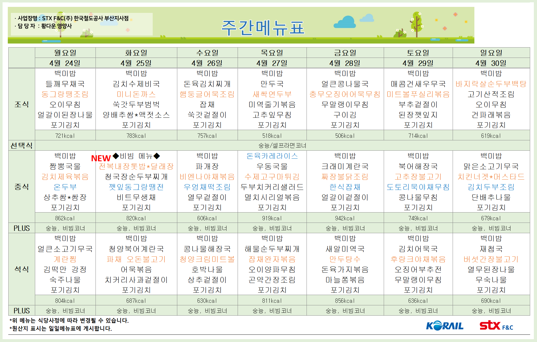 | 23-05-01 ~ 23-05-07 부산역_직원식당_메뉴 (0) | 2023.04.27 |