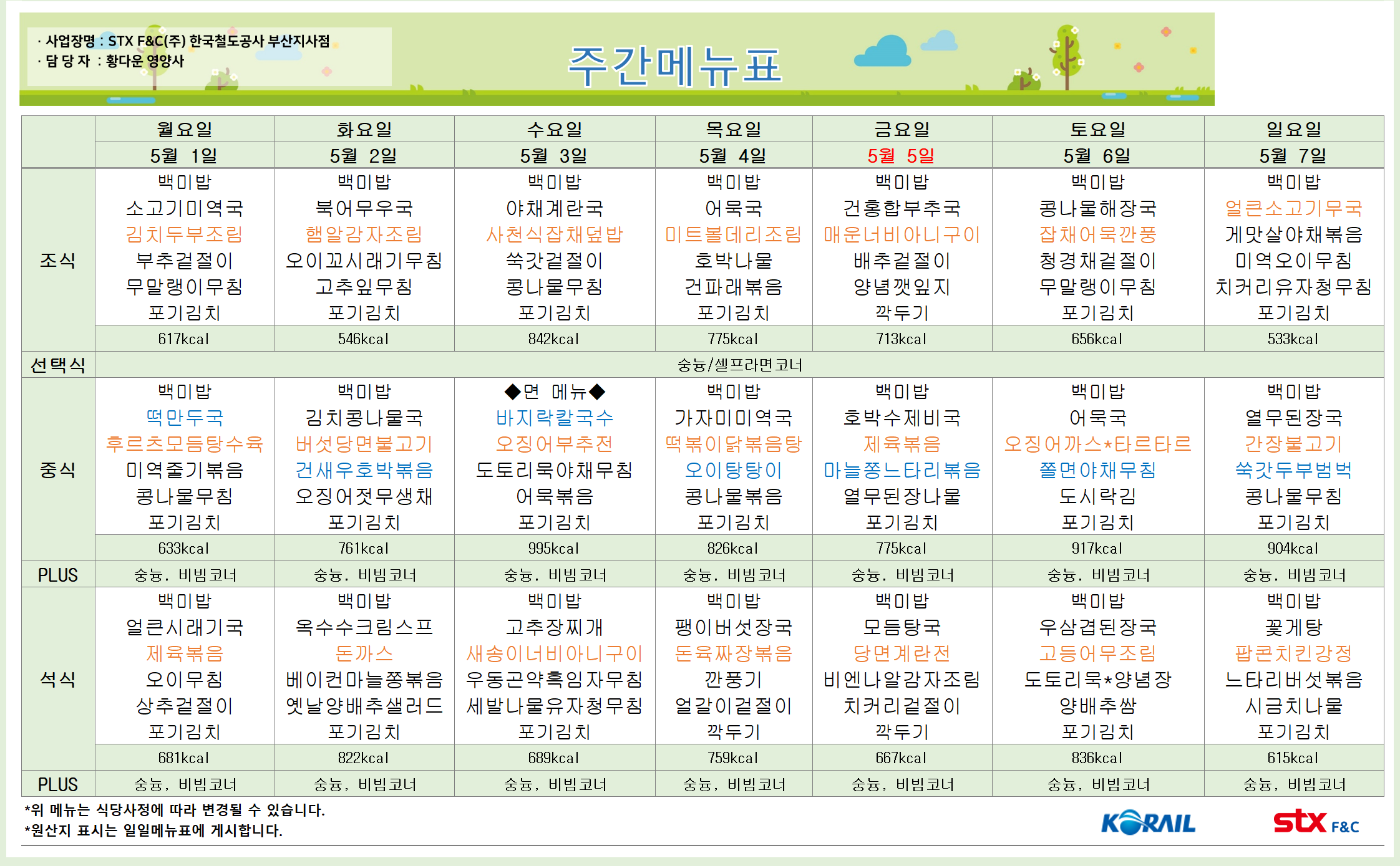 | 23-05-08 ~ 23-05-14 부산역_식단 (0) | 2023.05.04 |