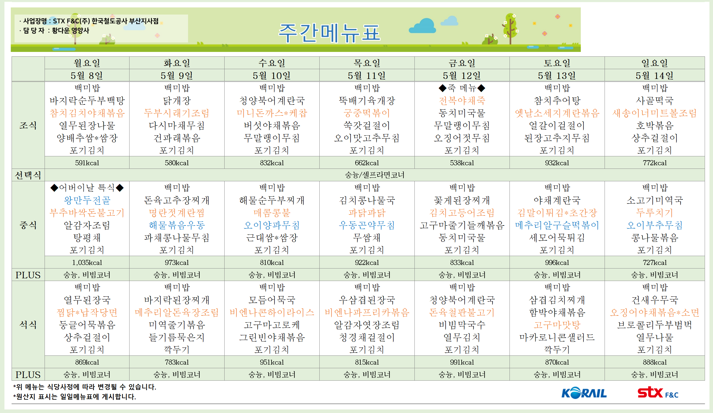 | 23-05-01 ~ 23-05-07 부산역_직원식당_메뉴 (0) | 2023.04.27 |