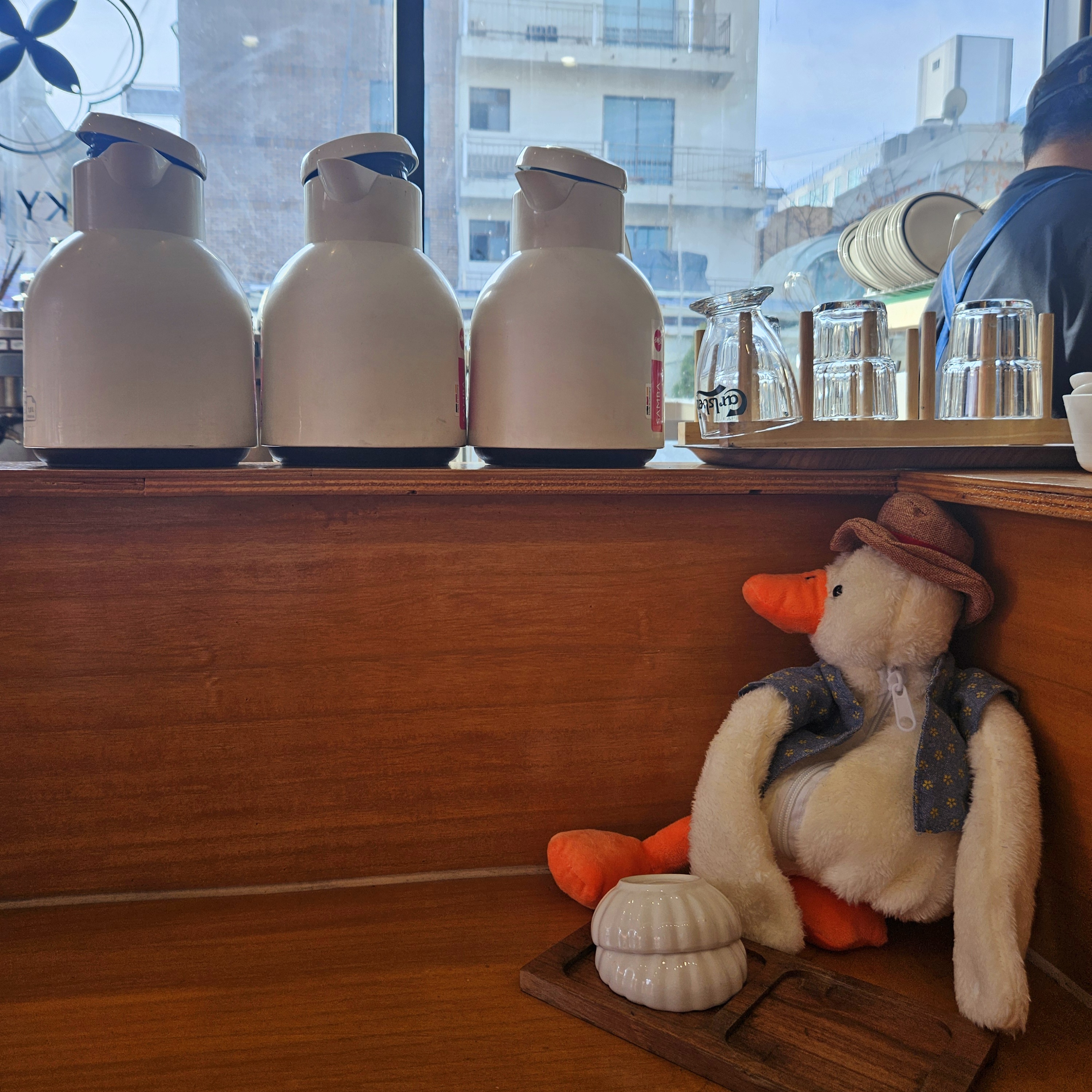 바테이블에 셀프 물과 반찬이 준비되어있습니다.