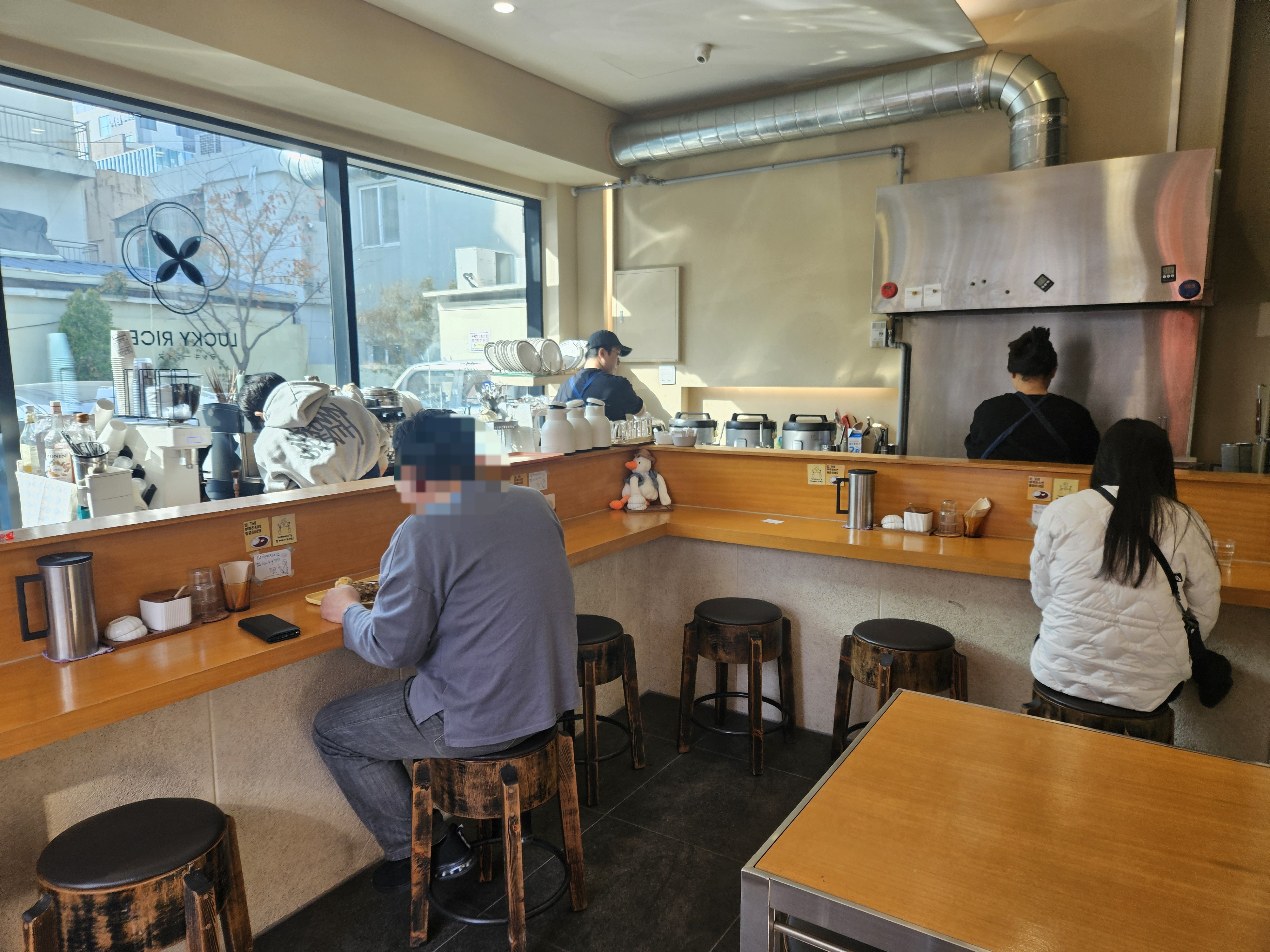 1층은 혼자 먹을수있는 바테이블과 2인좌석이 있고 2층에는 단체석이 있습니다.