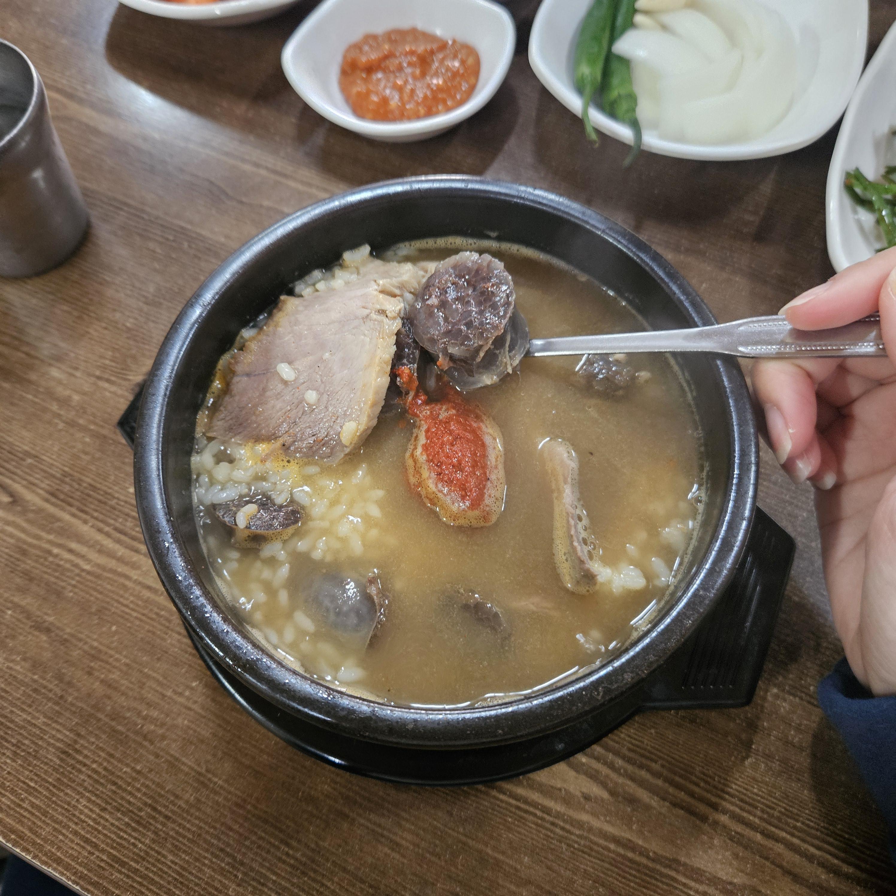 순대국밥에는 돼지 두점과 순대가 와방 들어있습니다.