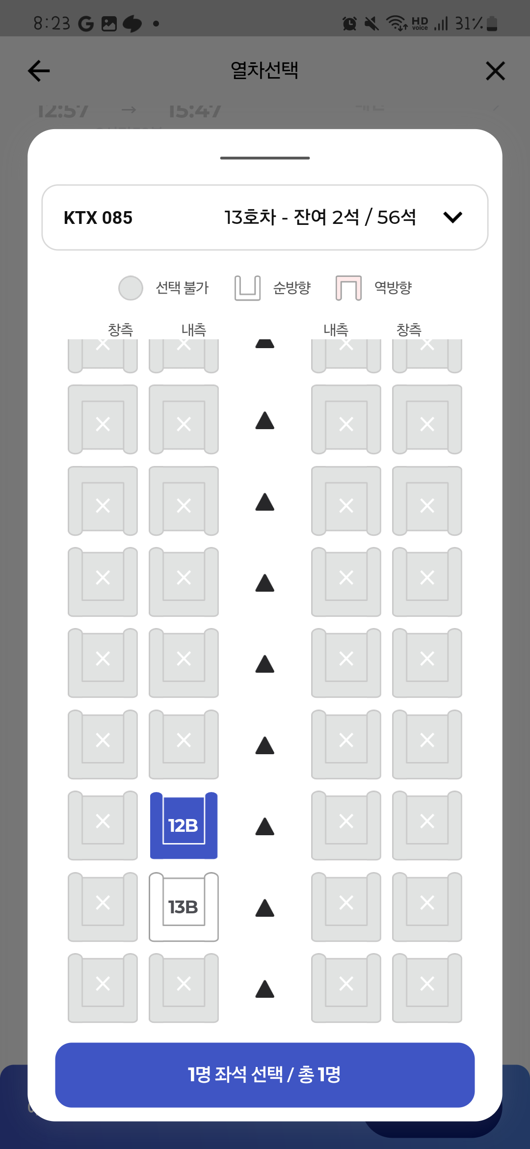 KTX편도/왕복 선택 가능하고