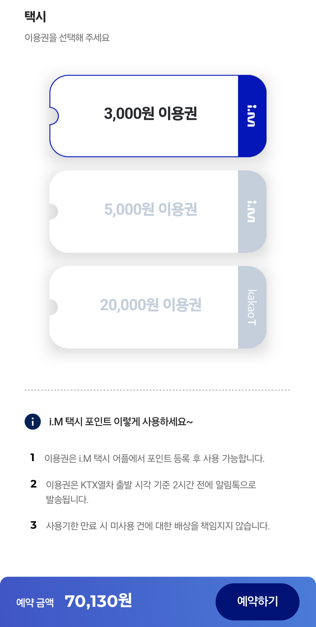 I.M 택시 3,000원 이용권을 선택했습니다.