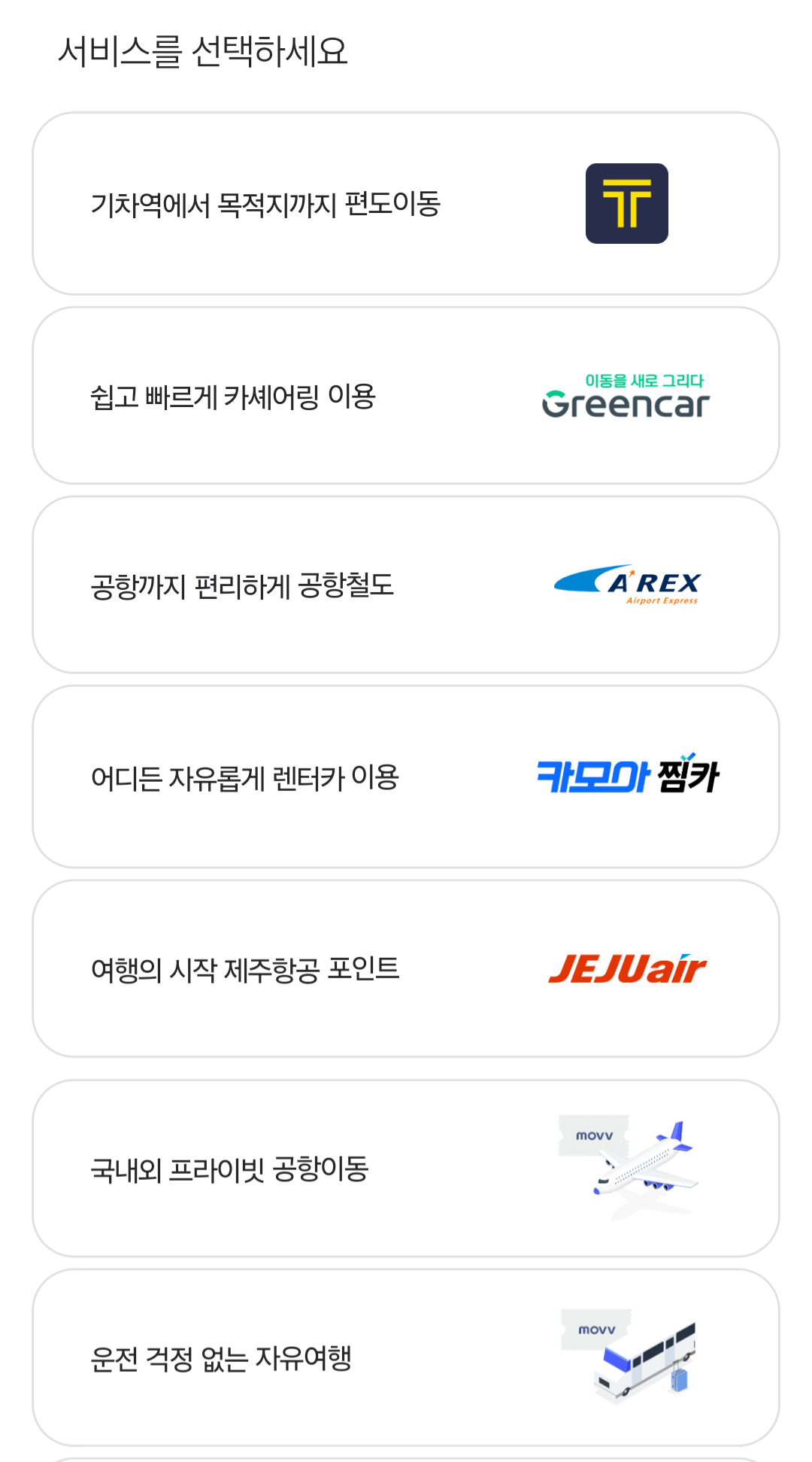 다음 연계 교통 서비스를 선택합니다.