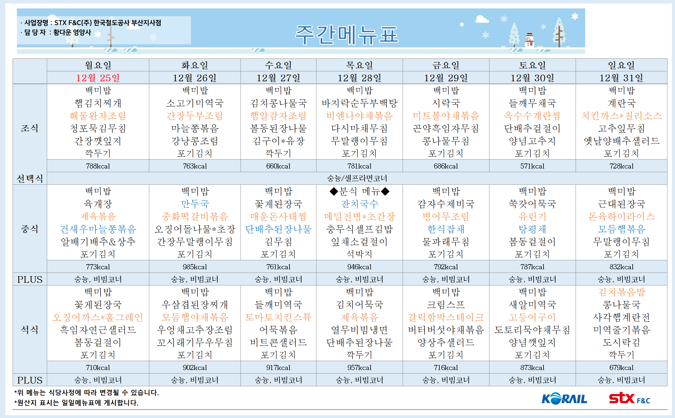 | 24-01-01 ~ 24-01-07 부산역 직원식당 메뉴 (1) | 2024.01.02 |