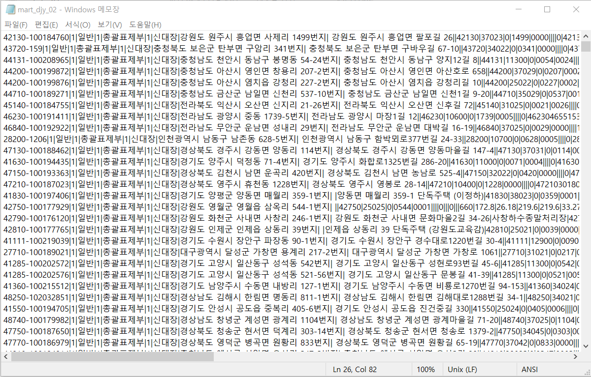 df1 = pd.read_csv("파일경로/파일명.txt", encoding="euc-kr", header=None, sep="|")