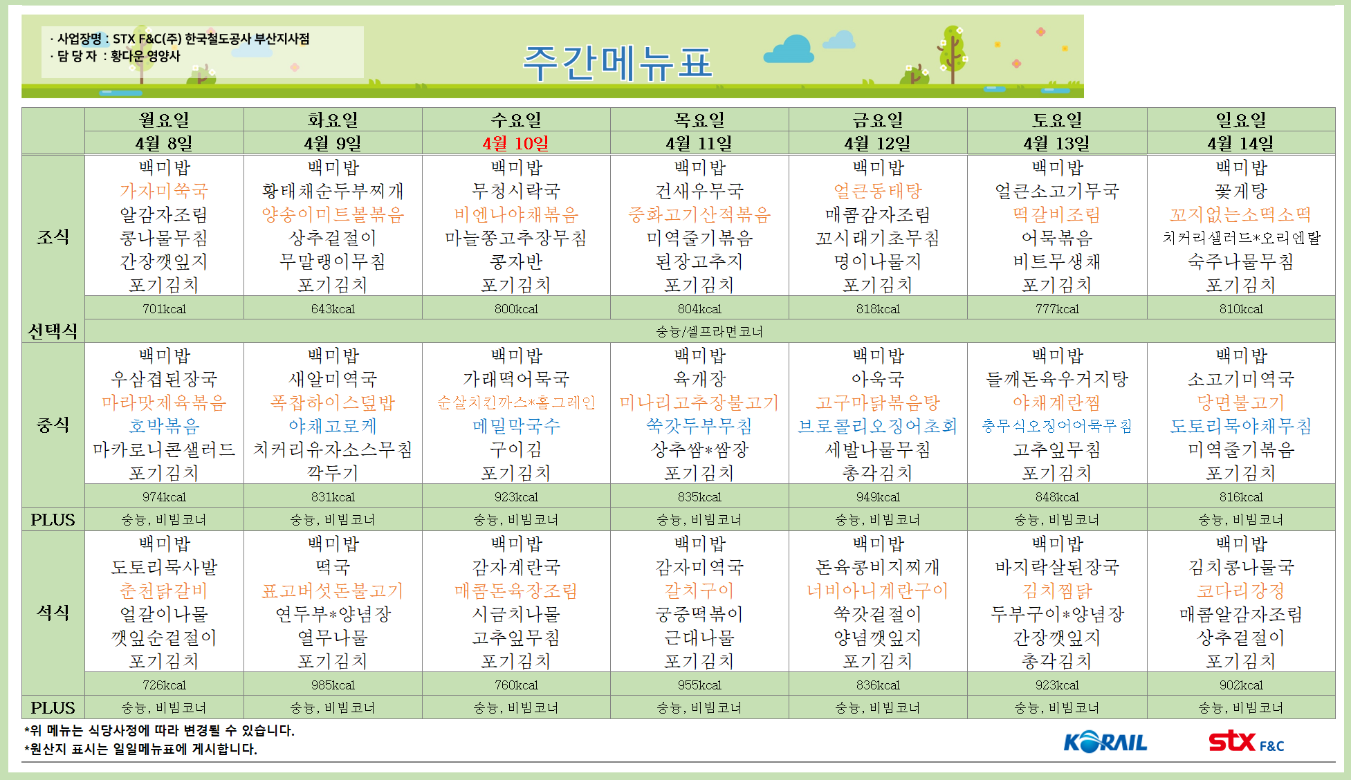| 24-04-01 ~ 24-04-07 부산역 직원식당 메뉴 (0) | 2024.03.29 |