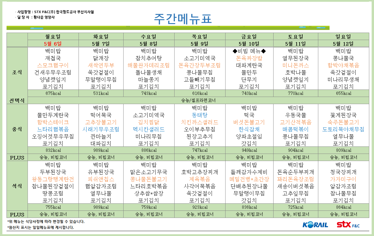 | 24-05-13 ~ 24-05-19 부산역 직원식당 메뉴 (0) | 2024.05.12 |