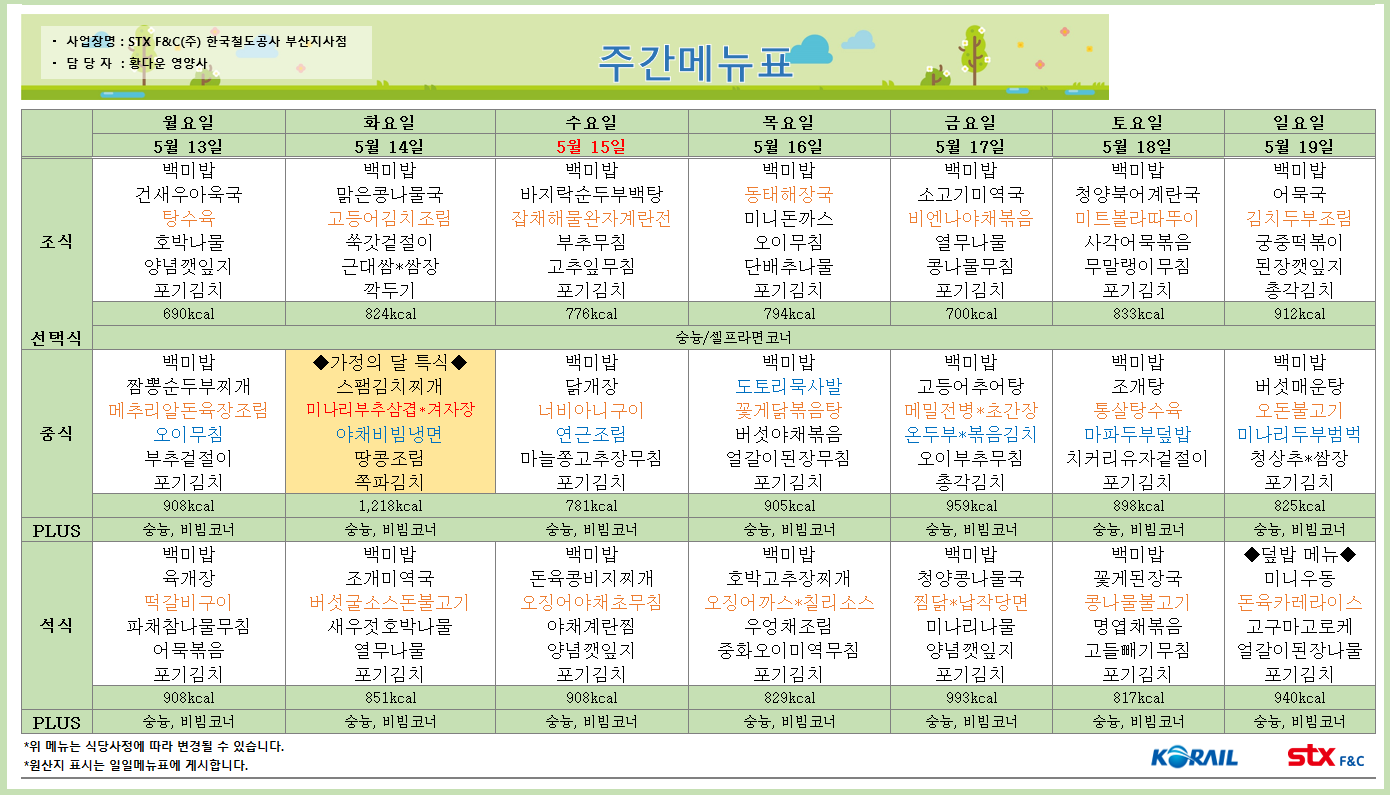 | 24-04-29 ~ 24-05-05 부산역 직원식당 메뉴 (0) | 2024.04.29 |