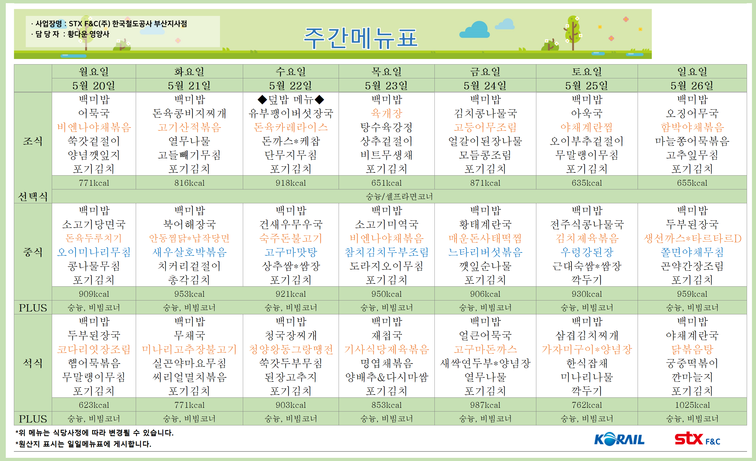 | 24-04-22 ~ 24-04-28 부산역 직원식당 메뉴 (2) | 2024.04.22 |